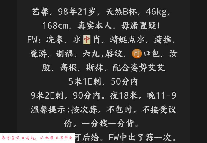 真实体验,经过试过,妹妹技术一流的,做活时候不会敷衍了事,性子也不急躁,可以慢慢享受品尝,本人跟照片