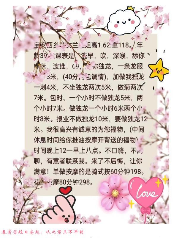 课表只有环保,能不能开大自己可以聊,享受服务还是半套环保舒服,450一次,在罗湖 位置很好找,波比较
