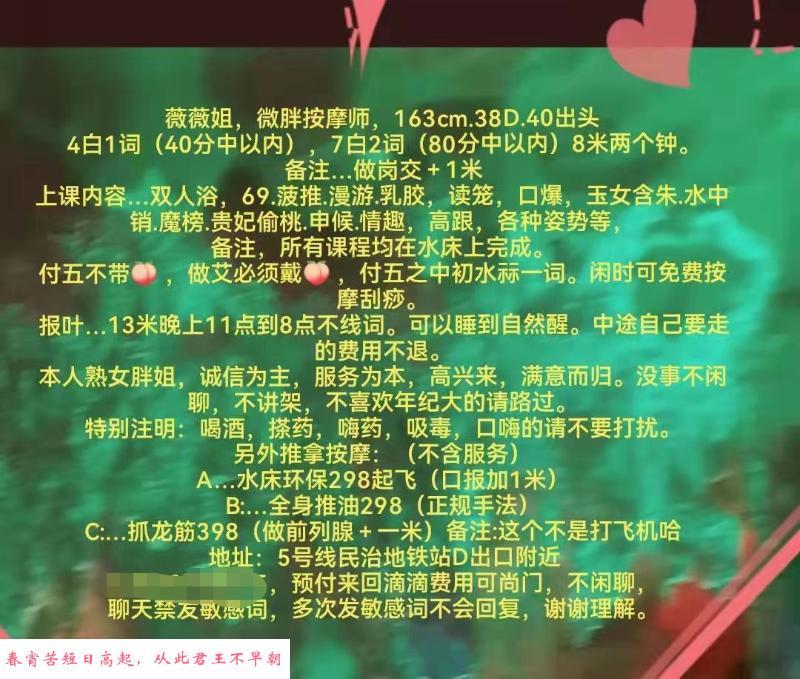 身材很高挑有接近170cm的身高,水多丰满型,是个泻火的好去处,会陪洗、调情、无套吹、以前是做技师的