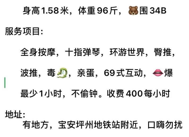 西乡客运站附近,有点龅牙,公鸭嗓,368做环保还可以,主要可以按着脑袋日很爽,大好像是600没做过。