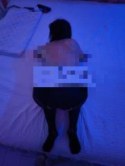 还是提前约好时间过去,进门一看真空蕾丝睡裙,里面什么都没穿。进去先洗澡,然后躺床上和老师聊聊色色,之