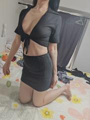 以前就找过猫老师,这次属于反食了,和猫老师约好时间,准时到达战场,遥控上门。老师穿了身黑色的超短裙,