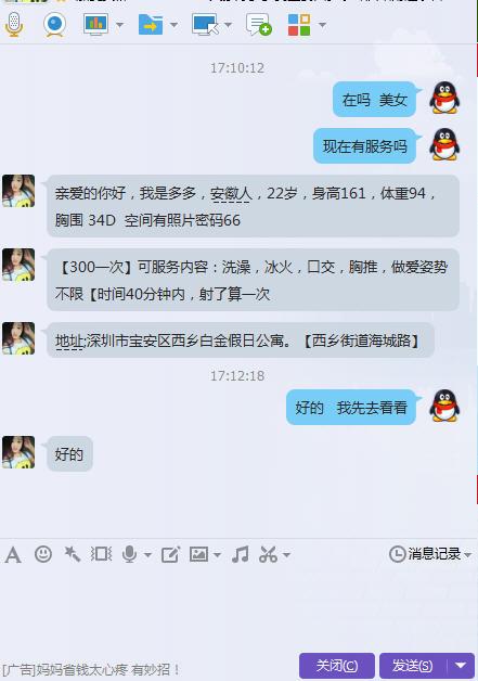 大胸,态度好 前段时间来深圳出差,晚上无聊就用QQ寻找附近的人,发现了这位姑娘,姑娘的大胸非常