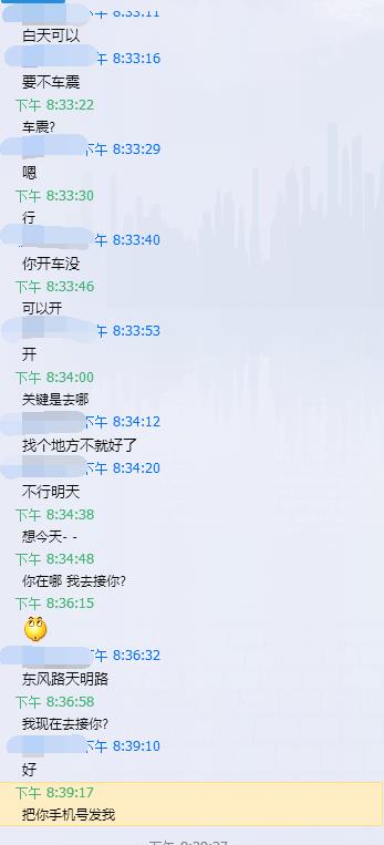 通过朋友介绍加了这个兼职MM,之后询问价格和一些细节,可以自己开房或者去她住处,妹纸很实诚,也为了提