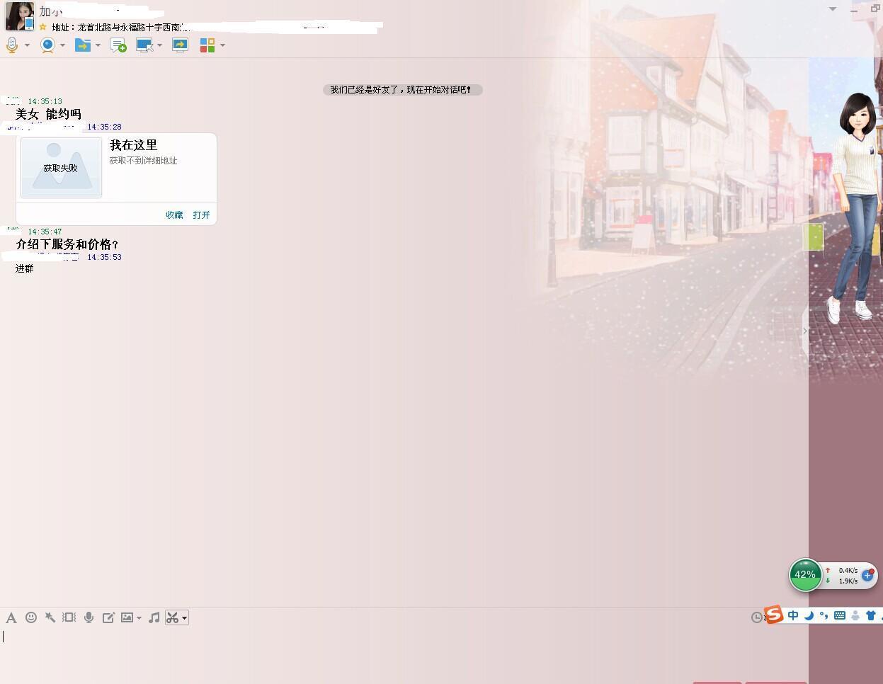 加这个女的QQ好多年了,QQ叫轻舞飞扬,以前在西一路,二百还是三百忘了。多年没联系,最近联系,说搬到