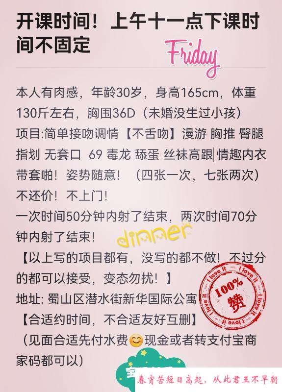 朋友推荐,今天在这边玩,然后在平台看见了这个少妇,先打了电话,小姐姐在忙,随后微信联系,看完课表位置
